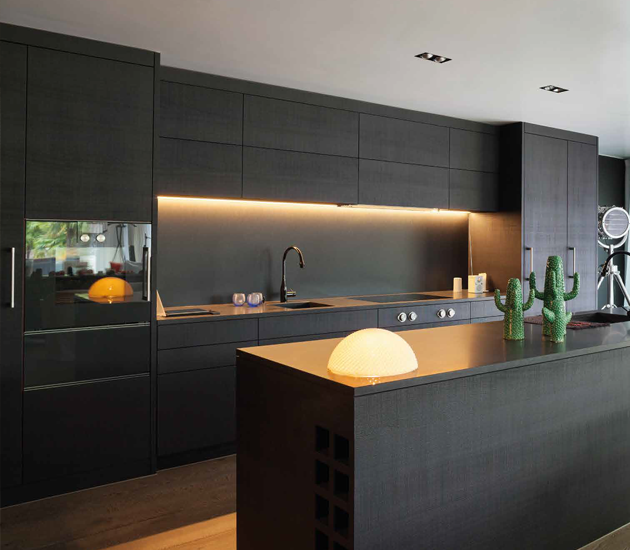 Premium glass & wood cabinetry with smart modular storage, luxury fittings, island counter & branded appliances like RO, Hob & Chimney.